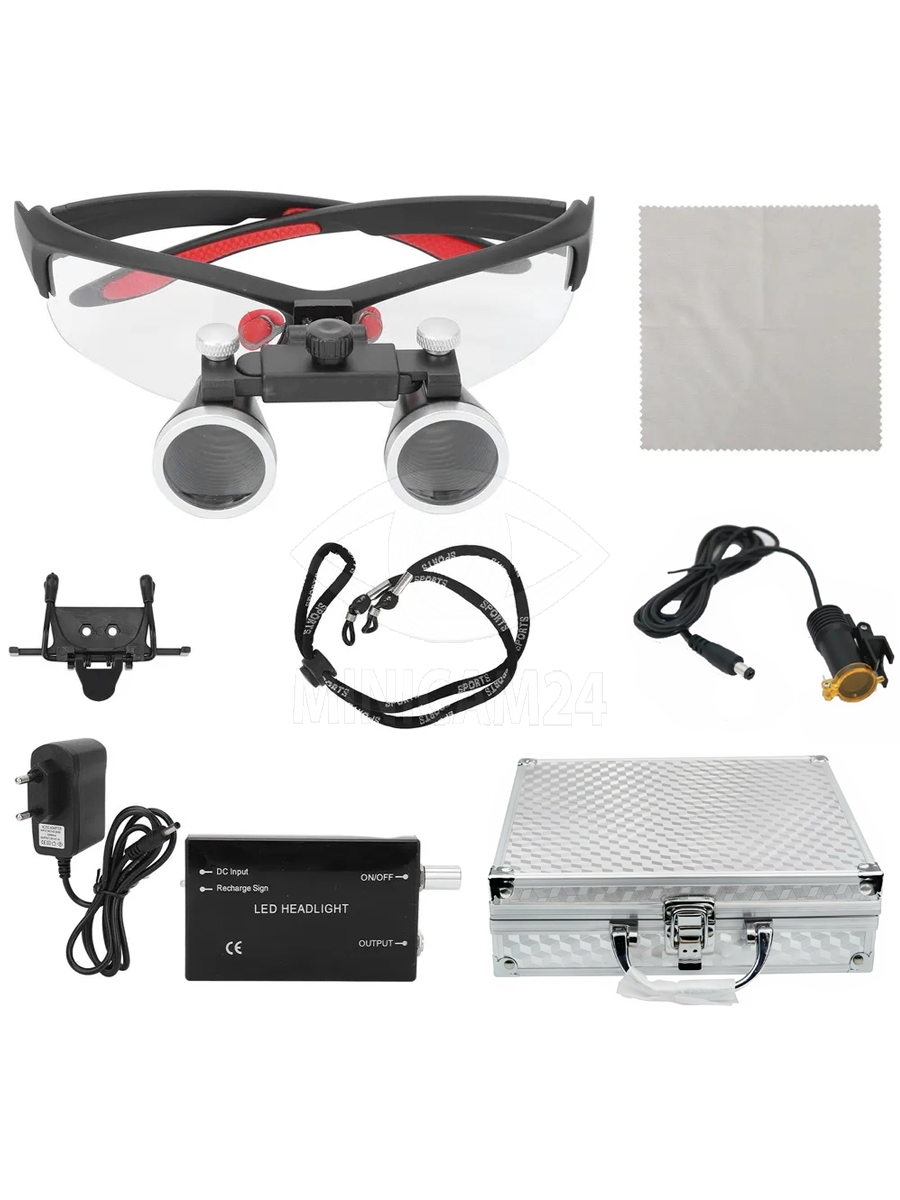 Бинокулярные лупа очки с подсветкой 3.5х, серебряный кейс